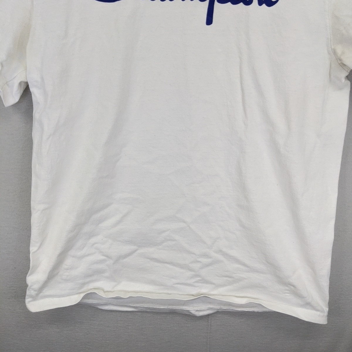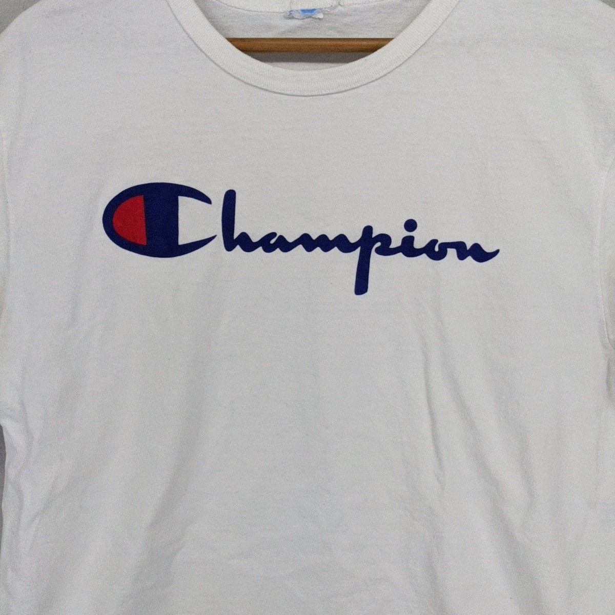 Champion T-shirt Shirt Short Sleeve White Classic 90 Sport No Size Tag Mens NOTE: There is no size tag present with this garment. Please refer to below measurements for sizing information. Armpit to armpit: 53cm approx. Top to Bottom: 71cm approx. Disclaimer:product colour may slightly vary due to photographic lighting sources or your monitor settings