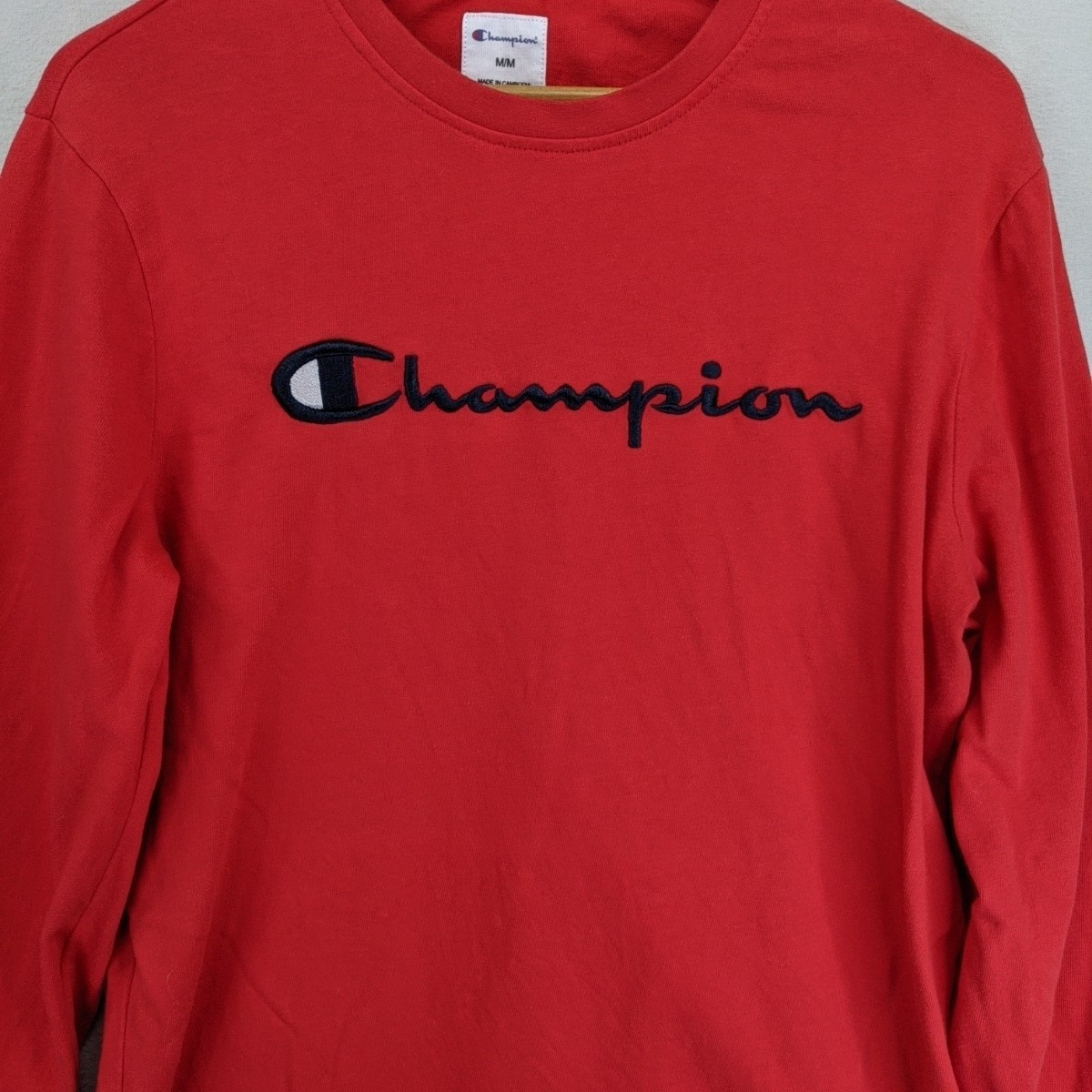 Champion Long Sleeve T-shirt Red Embroidered Logo Classic Sports M Mens Armpit to armpit: 51cm approx. Top to Bottom: 72cm approx. Disclaimer:product colour may slightly vary due to photographic lighting sources or your monitor settings