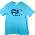 Make a bold statement with this eye-catching Champion t-shirt featuring a unique geometric abstract logo design. Perfect for casual streetwear, sports activities, or adding a pop of vibrant color to your everyday wardrobe. The modern artistic pattern combines style and comfort for an effortlessly cool look. Color: Blue Department: Men Type: T-Shirt Fit: Regular Sleeve Length: Short Sleeve Pattern: Geometric Country/Region of Manufacture: Indonesia Neckline: Crew Neck Features: Lightweight, Breathable Material: Cotton Keywords: champion, logo tee, graphic tshirt, turquoise, athletic wear, streetwear, abstract design, geometric pattern, mens fashion, casual wear, sports apparel, summer clothing
