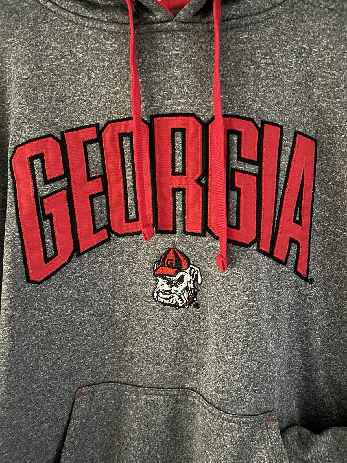 This Champion Georgia State Bulldogs NCAA hoodie features an embroidered logo on the front, making it perfect for football fans. It is officially licensed and designed for men to wear during the regular season. The hoodie is size medium and proudly made in Georgia.