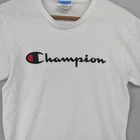 Champion White T-shirt Shirt Short Sleeve Classic Logo Front Basic Tee S Mens Armpit to armpit: 44cm approx. Top to Bottom: 67cm approx. Disclaimer:product colour may slightly vary due to photographic lighting sources or your monitor settings