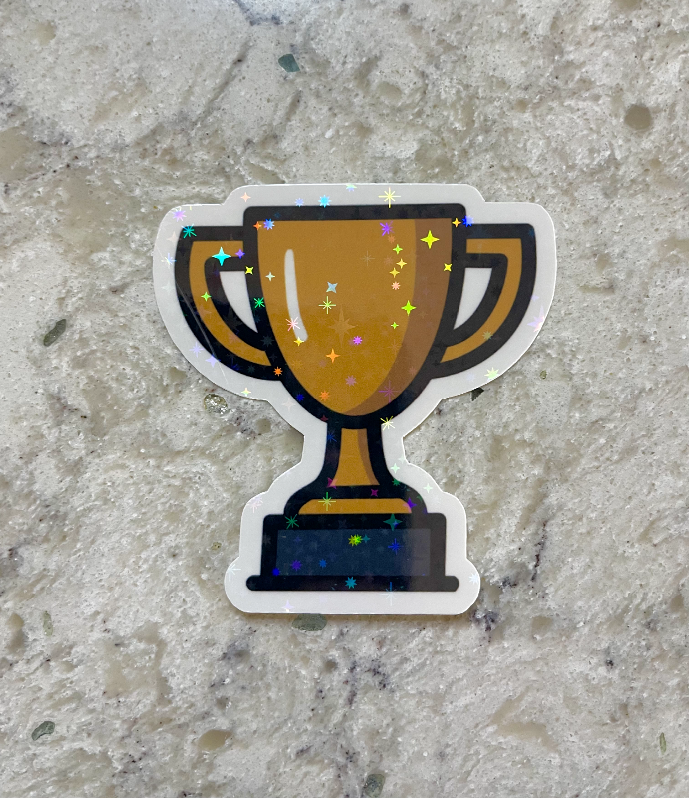 High quality waterproof Championship Trophy sticker perfect for sports lovers! These are very durable long lasting die cut stickers meaning they are versatile. They can go on laptops, phones, tablets, notebooks, tumblers, mugs, binders, and more! Available in gloss or holographic laminate and in small, medium, or large. Small - 1.4" x 1.3" Medium - 2.4" x 2.5" Large - 3.4" x 3.5" Sticker Care Instructions - Make sure to clean surface before placing sticker - Hand wash only, not dishwasher safe - Apply only to smooth surfaces - 1-3 day processing time - Shipping time is usually 1-5 days but varies due to USPS services and shipping procedures - Returns are accepted within 30 days