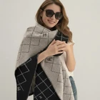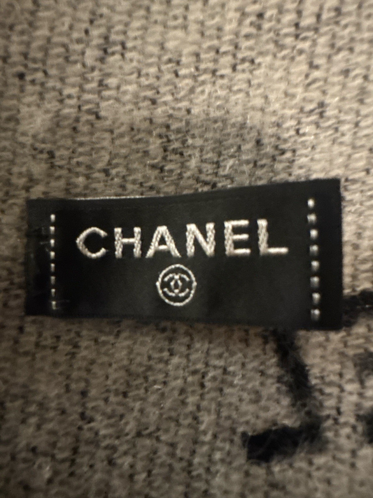Authentic Chanel 25A (Autumn 2024) reversible wool scarf featuring a double-sided black and white/gray design with the iconic quilted grid pattern and interlocking CC logo throughout. Crafted in Italy from a luxurious lambswool-blend, this scarf is soft, warm, and lightweight. The reversible construction allows for versatile styling and timeless wear. Pristine and unworn condition
