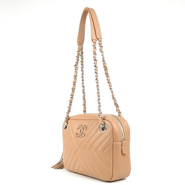Size: 24 cm width/ 17 cm/ width 7 cm/ strap height 30 cm Color: indie pink accessories: guarantee card/booklet Chanel (Chanel) A91778 indie pink color chevron camera chain shoulder bag [Gangnam Main Store]. It's in units of 25. Store price: 5; 600; 000 won. The material is calfskin. There is a zipper pocket on the inside. **Due to the nature of second-hand luxury goods, there may be stains not visible in the image. **