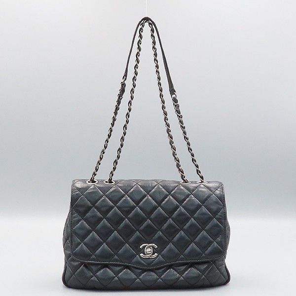 Size: 28 cm width/ 17 cm/ width 7 cm/ handle height 50 cm/ handle height : black accessories: booklet/ case Chanel (Chanel) black lambskin silver logo flap shoulder bag [Apgujeong] This is a unit of 21. The material is leather. There is a zipper pocket on the inside.