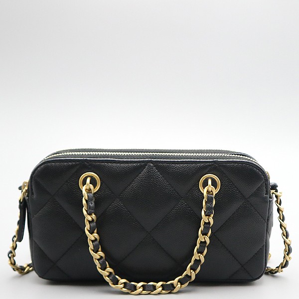 Size: Width 18 CM/Height 9.5 CM/Width 4 CM/Handle Height 7 CM/Strap Length 59 CM Accessories: Chanel (Chanel) AP3495 Black Caviar Double Zipper Gold Charm Chain Tote Bag and Cross Bag [Daegu Dongseong-ro Store]. The material is leather.