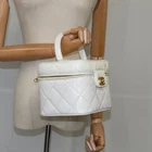 Brand: Chanel Model: Vanity Color: White Material: Patent Leather Inclusions: Dimensions: W17cm x H14cm x D16cm Serial number: 3370209 Country of origin: France Condition: AB - good condition. Outside condition : rubbing , slight sun burn , discoloration , partly color transfer Inside condition : rubbing , slight stain , partly peeling Handle condition : rubbing , slight color transfer Corner condition : rubbing Metal fittings condition : rubbing , slight color transfer Odor: storage smell Our eBay Store Chanel Vanity White Patent Leather Clutch Bag (Pre-Owned) Retail Price: $11097.00 Brand: Chanel Model: Vanity Color: White Material: Patent Leather Inclusions: Dimensions: W17cm x H14cm x D16cm Serial number: 3370209 Country of origin: France Condition: AB - good condition. Outside condition : rubbing , slight sun burn , discoloration , partly color transfer Inside condition : rubbing , slight stain , partly peeling Handle condition : rubbing , slight color transfer Corner condition : rubbing Metal fittings condition : rubbing , slight color transfer Odor: storage smell GUARANTEED 100% AUTHENTIC Simple. Free. 30-Day Returns. We understand returning an item can be a hassel. Not with us. If you don't love the item you purchased—for any reason—simply return it within 30 days for a full refund. Items returned must be in their original, unused condition with all authenticity cards, dust covers, tags, packaging and protector tapes intact. Items returned in any other condition will be subject to a restocking fee. Payment & Shipping We accept all major credit cards (Visa, Mastercard, American Express and Discover), as well as PayPal and Google Pay. We offer free shipping on all orders and ship via USPS, DHL, UPS and FedEx. Shipping times vary by location and are displayed in the 'Shipping, Returns & Payments' window. If you need a more expedited method of shipment, contact us and we will try our best to arrange it. Once your order has shipped, we will send you the tracking number promptly. About Us Based in Minneapolis, MN USA, with warehouses worldwide, we are a luxury goods outlet store, with over 20 years of experience, featuring authentic designer shoes, clothing, handbags and accessories from some of the world's most coveted brands—at a fraction of their retail price. Everything we sell is guaranteed to be 100% authentic, and we stand behind the authenticity of our merchandise with a money-back guarantee. Please know the pictures in our listing are of the actual product and are NOT stock photos. All of our photos are professionally taken in our warehouse studios. Contact Us If you have any questions—about our items, shipping, returns, etc.—please reach out to us. We love to help. Send us a message through eBay. We usually respond within a few hours or less. Happy shopping!