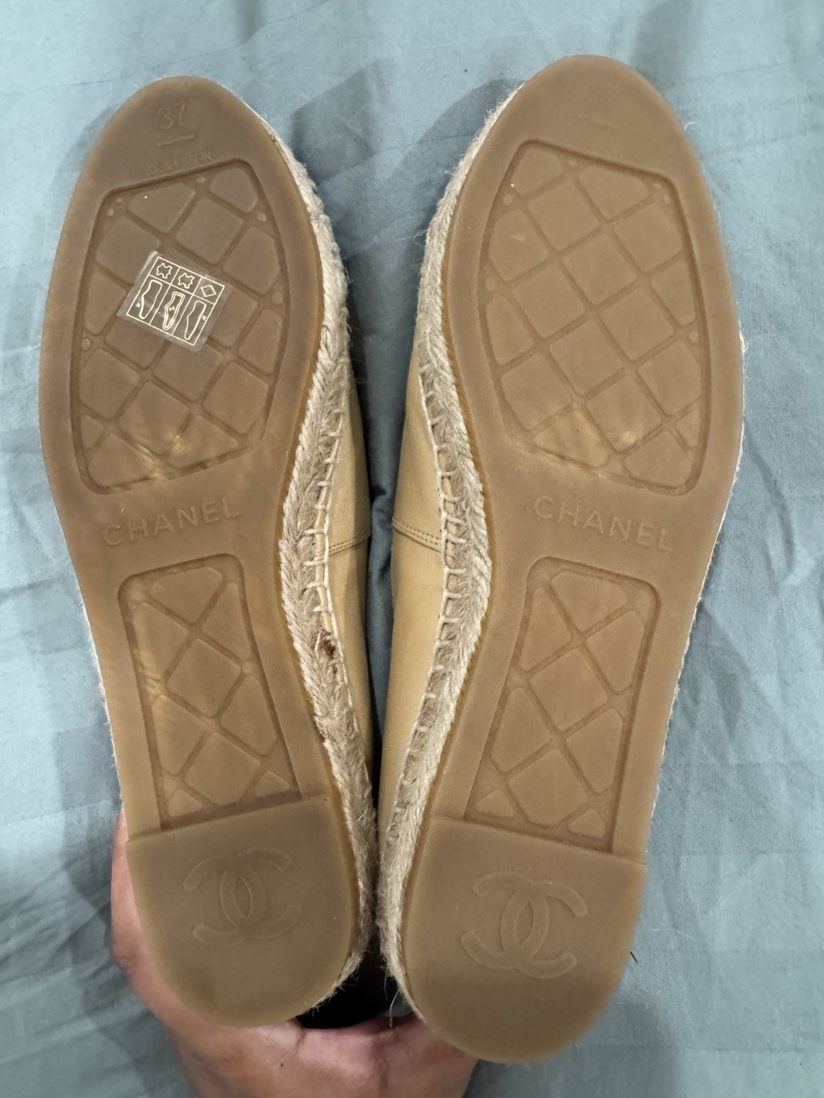 Chanel Beige Lambskin Leather Espadrille Flats Size 37
