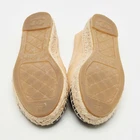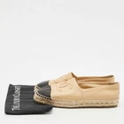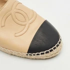 A classic reimagined, these Chanel espadrilles feature the house’s iconic beige and black cap toe design in supple leather. Finished with the CC logo, they combine casual comfort with Parisian sophistication.Certified by The Luxury Closet - This item has gone through a detailed authentication process overseen by our experts. We offer a lifetime guarantee of authenticity on all our items. Import duties, taxes and charges are not included in the item price. These charges are the buyers responsibility. Please check with your country’s customs office to determine what these additional cost will be prior to buying. Our eBay Store About Us Contact Us Add to Favorite Sellers Chanel Beige/Black Leather CC Cap Toe Espadrille Flats Size 38 $585.2 A classic reimagined, these Chanel espadrilles feature the house’s iconic beige and black cap toe design in supple leather. Finished with the CC logo, they combine casual comfort with Parisian sophistication. Product Details Brand Color Beige Dimensions Material Leather Size 38 Outsole Width Outsole Length Heel Height Includes Certified by The Luxury Closet This item has gone through a detailed authentication process overseen by our experts. We offer a lifetime guarantee of authenticity on all our items. How We Check The in-house team of experts at The Luxury Closet is highly trained to verify the authenticity and the condition of the luxury products. They ensure that only 100% authentic items are put on sale.The evaluation process is unique with its own mix of assessment criteria and differs according to the category. Each item is evaluated based on the following combination of hallmarks, hardware, stitching, symmetry, material, craftsmanship, stamping, codes, hologram stickers, and packaging. Our authenticators also check if the items have been modified or amended (e.g., aftermarket diamonds, replaced batteries, repaired bags, etc.) International Buyers Import duties, taxes and charges are not included in the item price. These charges are the buyers responsibility. Please check with your country’s customs office to determine what these additional cost will be prior to buying.