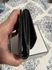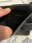 Chanel Black Caviar Leather Timeless ‘CC’ Compact Wallet that is in perfect condition. The only issues are there are a couple of small scratches on the inside. It also has. A deep scratch on the back of the wallet as seen on the second to last slide. It comes with the card and box.