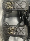 HomeChanel Black Caviar Leather Dad Sandals Gold Hardware Size 38.5