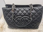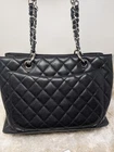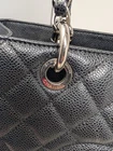 Beautiful classic GST in black caviar with silver hardware. Comes with Chanel authenticity card and Entrupy Certificate. Interior is very clean with no noticeable stains or odors. Exterior caviar looks good overall, but does present some rubs on corners. Slight loss of shape in back side, needs to be stuffed when not in use. It will keep it's shape. Florida licensed, 17 yr business owner 5 ⭐️ Page: FOLLOW ➡️ Shore Chic Luxury Handbags - Entrupy verified authenticator - Admins numerous luxury groups - AUTHENTICITY GUARANTEED - Not affiliated or representing any brand name. All rights reserved under Nominative Fair Use act.