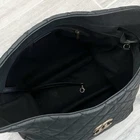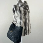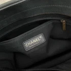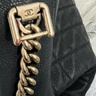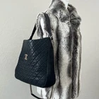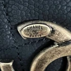 This is a rare find! 100% authentic. 14” L x 12” H x 4 1/4” D. Black diamond stitched caviar leather with aged brass hardware. Detachable leather shoulder strap. Aged brass chain link strap (this strap is not detachable or adjustable). Exterior has a Chanel CC logo at front. Zipper closure. Interior is black fabric with a zipper pocket and 2 patch pockets. Versatile. Wear as a shoulder or crossbody bag. Pre loved, barely used. Pristine condition. Faint tarnishing on side metal clasp. Comes with Chanel box, dust bag, care booklet and authenticity card.