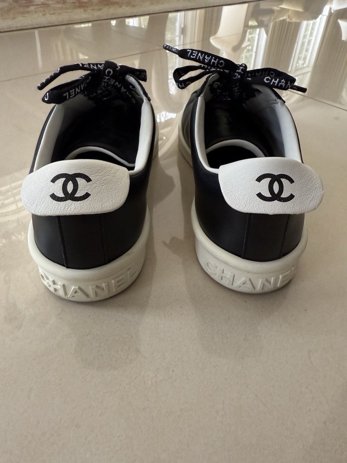 These sneakers are absolute perfection—luxurious black leather, elegant CC heel detail, and a flawless fit. The lace-up design adds a sporty-chic edge, while the flap gives them a signature Chanel touch. Super comfortable yet undeniably stylish, they elevate any outfit effortlessly. A must-have for any fashion lover!
