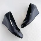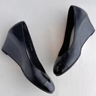 Chanel Black Leather Wedge Sandals with Ankle Strap Size 36 US