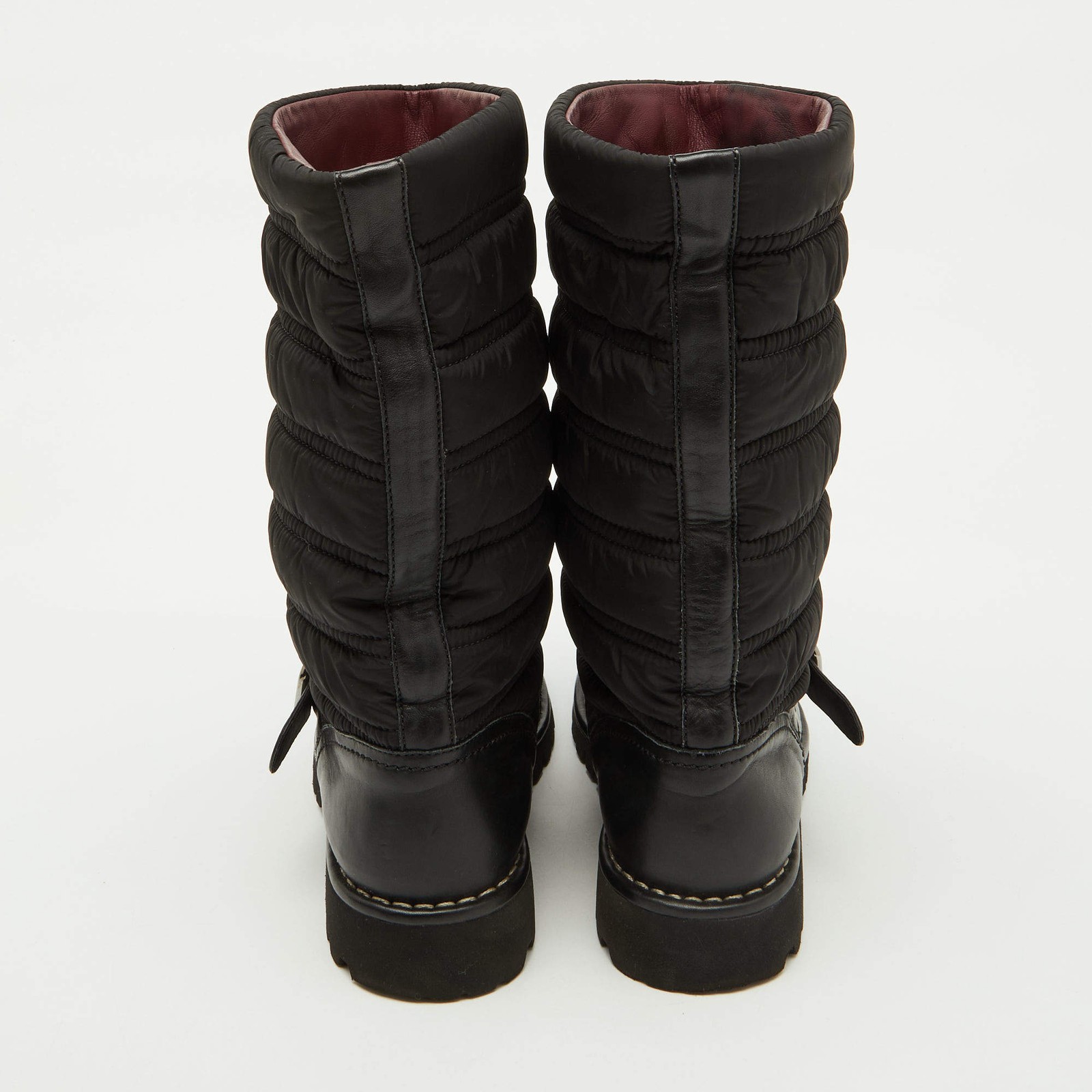 Our eBay Store About Us Contact Us Add to Favorite Sellers Chanel Black Nylon and Leather CC Logo Moto Calf Length Boots Size 39 Combining practicality with house codes, this moto-style boot is crafted from durable materials, and finished with CC branding. Rugged luxury designed for off-duty cool. Product Details Brand Chanel Color Black Includes The Luxury Closet Packaging Outsole Length 27 cm Outsole Width 10 cm Size 39 Certified by The Luxury Closet This item has gone through a detailed authentication process overseen by our experts. We offer a lifetime guarantee of authenticity on all our items. How We Check The in-house team of experts at The Luxury Closet is highly trained to verify the authenticity and the condition of the luxury products. They ensure that only 100% authentic items are put on sale.The evaluation process is unique with its own mix of assessment criteria and differs according to the category. Each item is evaluated based on the following combination of hallmarks, hardware, stitching, symmetry, material, craftsmanship, stamping, codes, hologram stickers, and packaging. Our authenticators also check if the items have been modified or amended (e.g., aftermarket diamonds, replaced batteries, repaired bags, etc.) International Buyers Import duties, taxes and charges are not included in the item price. These charges are the buyers responsibility. Please check with your country’s customs office to determine what these additional cost will be prior to buying.