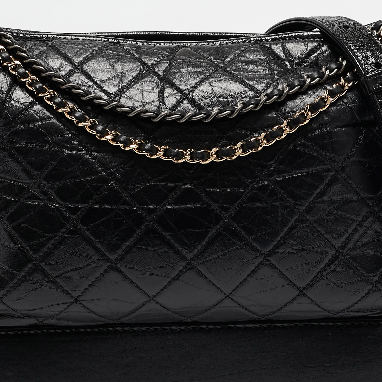 Embrace timeless allure with the Chanel Gabrielle hobo. Crafted with meticulous attention to detail, it boasts a classic quilted leather design in black with two tone metal, exuding effortless chic.Certified by The Luxury Closet - This item has gone through a detailed authentication process overseen by our experts. We offer a lifetime guarantee of authenticity on all our items. Import duties, taxes and charges are not included in the item price. These charges are the buyers responsibility. Please check with your country’s customs office to determine what these additional cost will be prior to buying. Our eBay Store About Us Contact Us Add to Favorite Sellers Chanel Black Quilted Aged Leather Large Gabrielle Hobo $2676.3 Embrace timeless allure with the Chanel Gabrielle hobo. Crafted with meticulous attention to detail, it boasts a classic quilted leather design in black with two tone metal, exuding effortless chic. Product Details Brand Color Black Dimensions Height: 28 cm, Width: 10 cm, Length: 30 cm Material Leather Size Outsole Width Outsole Length Heel Height Includes Original Dustbag, Authenticity Card Certified by The Luxury Closet This item has gone through a detailed authentication process overseen by our experts. We offer a lifetime guarantee of authenticity on all our items. How We Check The in-house team of experts at The Luxury Closet is highly trained to verify the authenticity and the condition of the luxury products. They ensure that only 100% authentic items are put on sale.The evaluation process is unique with its own mix of assessment criteria and differs according to the category. Each item is evaluated based on the following combination of hallmarks, hardware, stitching, symmetry, material, craftsmanship, stamping, codes, hologram stickers, and packaging. Our authenticators also check if the items have been modified or amended (e.g., aftermarket diamonds, replaced batteries, repaired bags, etc.) International Buyers Import duties, taxes and charges are not included in the item price. These charges are the buyers responsibility. Please check with your country’s customs office to determine what these additional cost will be prior to buying.