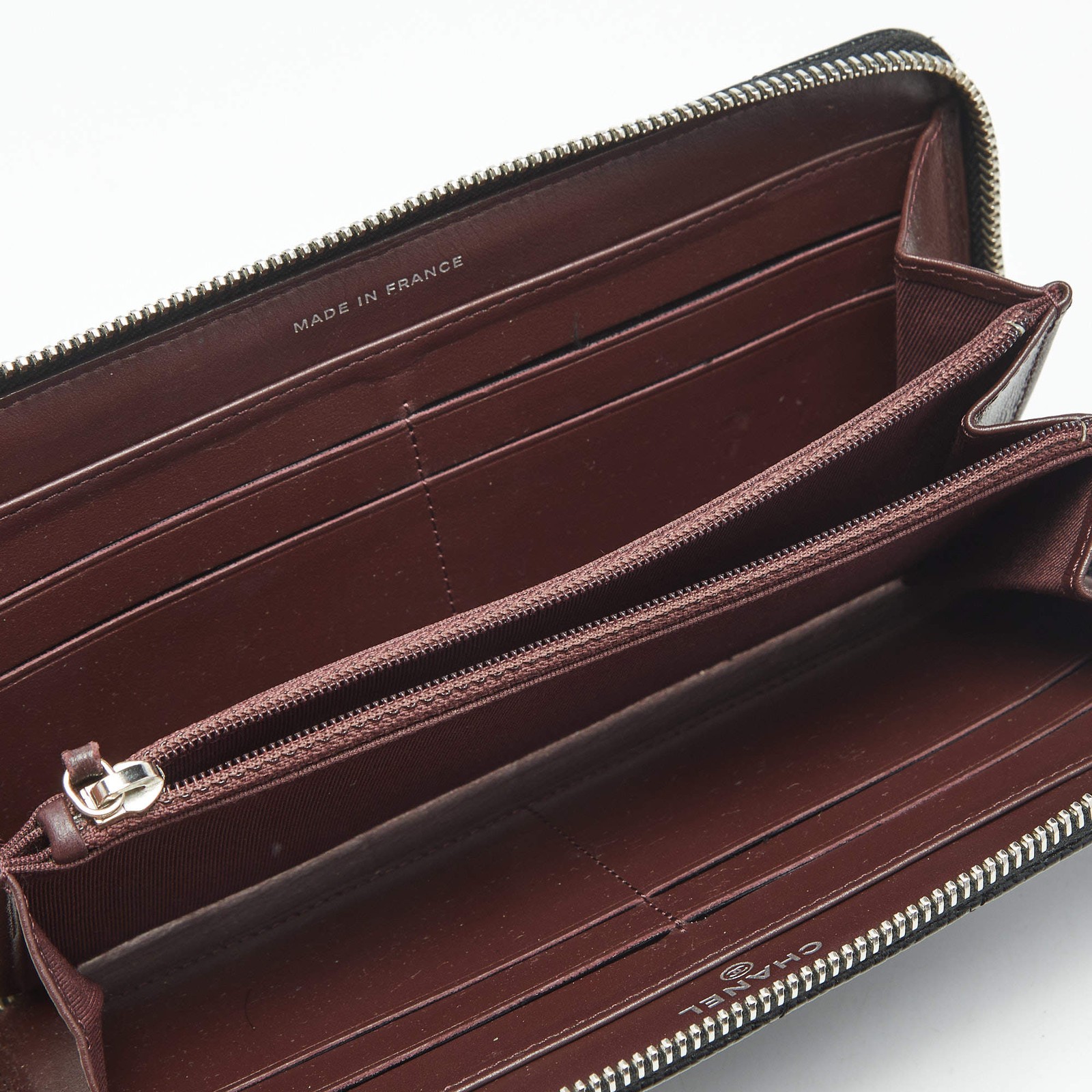 Our eBay Store About Us Contact Us Add to Favorite Sellers Chanel Black Quilted Caviar Leather CC Zip Around Wallet $706 Crafted from caviar leather and finished with Chanel’s iconic quilting, this sleek black wallet is both refined and resilient. The CC zip-around closure ensures your valuables stay stylishly secure. Product Details Brand Chanel Color Black Includes Authenticity Card, Original Box, Original Pouch Material Leather and Nylon Certified by The Luxury Closet This item has gone through a detailed authentication process overseen by our experts. We offer a lifetime guarantee of authenticity on all our items. How We Check The in-house team of experts at The Luxury Closet is highly trained to verify the authenticity and the condition of the luxury products. They ensure that only 100% authentic items are put on sale.The evaluation process is unique with its own mix of assessment criteria and differs according to the category. Each item is evaluated based on the following combination of hallmarks, hardware, stitching, symmetry, material, craftsmanship, stamping, codes, hologram stickers, and packaging. Our authenticators also check if the items have been modified or amended (e.g., aftermarket diamonds, replaced batteries, repaired bags, etc.) International Buyers Import duties, taxes and charges are not included in the item price. These charges are the buyers responsibility. Please check with your country’s customs office to determine what these additional cost will be prior to buying.
