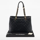 This Chanel grand shopper tote exudes Parisian poise. Crafted in durable caviar leather with classic quilting, its a timeless staple for everyday use.Certified by The Luxury Closet - This item has gone through a detailed authentication process overseen by our experts. We offer a lifetime guarantee of authenticity on all our items. Import duties, taxes and charges are not included in the item price. These charges are the buyers responsibility. Please check with your country’s customs office to determine what these additional cost will be prior to buying. Our eBay Store About Us Contact Us Add to Favorite Sellers Chanel Black Quilted Caviar Leather Grand Shopper Tote $2942.5 This Chanel grand shopper tote exudes Parisian poise. Crafted in durable caviar leather with classic quilting, its a timeless staple for everyday use. Product Details Brand Color Black Dimensions Material Leather Size Outsole Width Outsole Length Heel Height Includes Certified by The Luxury Closet This item has gone through a detailed authentication process overseen by our experts. We offer a lifetime guarantee of authenticity on all our items. How We Check The in-house team of experts at The Luxury Closet is highly trained to verify the authenticity and the condition of the luxury products. They ensure that only 100% authentic items are put on sale.The evaluation process is unique with its own mix of assessment criteria and differs according to the category. Each item is evaluated based on the following combination of hallmarks, hardware, stitching, symmetry, material, craftsmanship, stamping, codes, hologram stickers, and packaging. Our authenticators also check if the items have been modified or amended (e.g., aftermarket diamonds, replaced batteries, repaired bags, etc.) International Buyers Import duties, taxes and charges are not included in the item price. These charges are the buyers responsibility. Please check with your country’s customs office to determine what these additional cost will be prior to buying.
