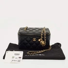 Petite in form yet packed with statement appeal, this Chanel Tiny Vanity Case is crafted from black quilted leather. Designed with a top handle and chain shoulder strap, it brings a touch of Parisian flair to any outfit. Perfect for styling crossbody or handheld.Certified by The Luxury Closet - This item has gone through a detailed authentication process overseen by our experts. We offer a lifetime guarantee of authenticity on all our items. Import duties, taxes and charges are not included in the item price. These charges are the buyers responsibility. Please check with your country’s customs office to determine what these additional cost will be prior to buying. Our eBay Store About Us Contact Us Add to Favorite Sellers Chanel Black Quilted Leather Tiny Vanity Case Bag $4625.5 Petite in form yet packed with statement appeal, this Chanel Tiny Vanity Case is crafted from black quilted leather. Designed with a top handle and chain shoulder strap, it brings a touch of Parisian flair to any outfit. Perfect for styling crossbody or handheld. Product Details Brand Color Black Dimensions Material Leather Size Outsole Width Outsole Length Heel Height Includes Certified by The Luxury Closet This item has gone through a detailed authentication process overseen by our experts. We offer a lifetime guarantee of authenticity on all our items. How We Check The in-house team of experts at The Luxury Closet is highly trained to verify the authenticity and the condition of the luxury products. They ensure that only 100% authentic items are put on sale.The evaluation process is unique with its own mix of assessment criteria and differs according to the category. Each item is evaluated based on the following combination of hallmarks, hardware, stitching, symmetry, material, craftsmanship, stamping, codes, hologram stickers, and packaging. Our authenticators also check if the items have been modified or amended (e.g., aftermarket diamonds, replaced batteries, repaired bags, etc.) International Buyers Import duties, taxes and charges are not included in the item price. These charges are the buyers responsibility. Please check with your country’s customs office to determine what these additional cost will be prior to buying.