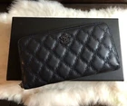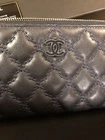 Comes with authenticity card and Chanel box. Great condition! This stunning Chanel zippy wallet is a must-have accessory for any fashion-forward woman. The beautiful blue color is complemented by the exquisite quilted accents, making it a true statement piece. Perfect for carrying your essentials, this wallet is a stylish addition to any outfit. Crafted from high-quality materials, this pre-owned wallet is in excellent condition and is sure to last for years to come. The brand name speaks for itself, ensuring that you are getting a top-quality product. Don't miss out on the chance to add this beautiful Chanel wallet to your collection.