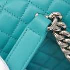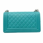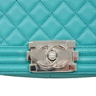 Chanel Boy Shoulder Bag, Chain Lambskin, Turquoise Blue, Women's Description General Brand Chanel Design Type Shoulder bag Material Leather Leather/Fur Type Lambskin Color Turquoise Hardware Color Silver Gender Women Size Size (HxWxD) 15cm x 25cm x 9cm / 5.9'' x 9.84'' x 3.54'' Specifics Included Items Accessories Box, Dust bag, Guarantee card Accessories Notice Before purchasing, please refer to the images of the accessories included with the item. Condition Condition Used (good) Ranking Rank AB Used - Traces of usage, scratches / dirt can be seen but generally in good condition Seller Ranking Rank AB Overall Scratches Slight Overall Dirt Slight Overall Traces of Use Slight Condition Notice Before purchasing, please refer to the images for the exact condition of the item. Information Powered by eLADY eLady's Condition Ranking New The item is brand new and has never been used. Used (like new) Mint condition or barely used. Used (very good) It is obvious that the item has been used previously but in very good condition. Used (good) It is obvious that the item has been used previously for a period of time but generally in good condition. Used (acceptable) It is obvious that the item has been used for a prolonged period of time but is still in acceptable condition for continued usage. Used (refurbished) The item is used but has been refurbished. For parts or not working Junk condition, can be used for replacement parts. Returns 14 Days No Questions Asked Refund If for any reason you should wish to return a product(s) bought from us, you can do so. Provided that the return met the following conditions, we will give you a item merchandise refund*, no re-stocking fee deducted and no questions asked! Item(s) are returned within 14 days of receipt Item(s) are returned in original condition with original packaging Please use EMS tracking service and write down "Return item" on your EMS invoice. *Note: Please be advised that eLADY will not cover any postage costs for returned products unless it suffers from manufacture defect. Payment We accept Paypal Only. Please make payment within 3 days after listing ended. Shipping FREE SHIPPING WORLDWIDE Items will be shipped worldwide with tracking number system. An E-mail with a tracking number will be mailed to you as soon as the package leaves our warehouse. Purchased items will be dispatched from Japan. Approximate delivery date is 3-10 days, depending on your location but delay may occur due to the process at the customs of your country or various other reasons. IMPORTANT NOTICE Import duties, taxes and charges are not included in the item price or shipping charges. These charges are the buyer's responsibility. Please check with your country's customs office to determine what these additional costs will be prior to bidding/buying. These charges are normally collected by the delivering freight (shipping) company or when you pick the item up - do not confuse them for additional shipping charges. Please be advised that eLADY will not cover any postage costs for returned products unless it suffers from manufacture defect. ABOUT eLADY eLADY, based in Tokyo, Japan, is a member of the International Anti-Counterfeiting Coalition, and a pioneering provider of patent-pending anti-counterfeiting solutions for luxury brand goods., under its brand. All of its items are inspected carefully by expert authenticators and come with a full, lifetime, money back guarantee regarding authenticity. eLADY is a global leader and a pioneer in anti-counterfeiting and has provided anti-counterfeiting training to hundreds of recycle shops and pawn shops in Japan specializing in pre-owned luxury brand items. eLADY provides various services to businesses interested in eliminating counterfeit items from the marketplace, including training, real time web-camera support, and other solutions based on the world`s most extensive database for the appraisal and authentication of luxury brand items. If you need your item to be authenticated, please contact eLADY. eLADY has been featured many times in Japanese media, including the cover of Newsweek (Japanese edition). eLADY is a Tokyo Prefectural Police Department Certified Dealer (Vendor Authorization Number: 301110005641) eLADY Ltd. 2-2-8 Roppongi Minato-ku Tokyo Japan 106-0032