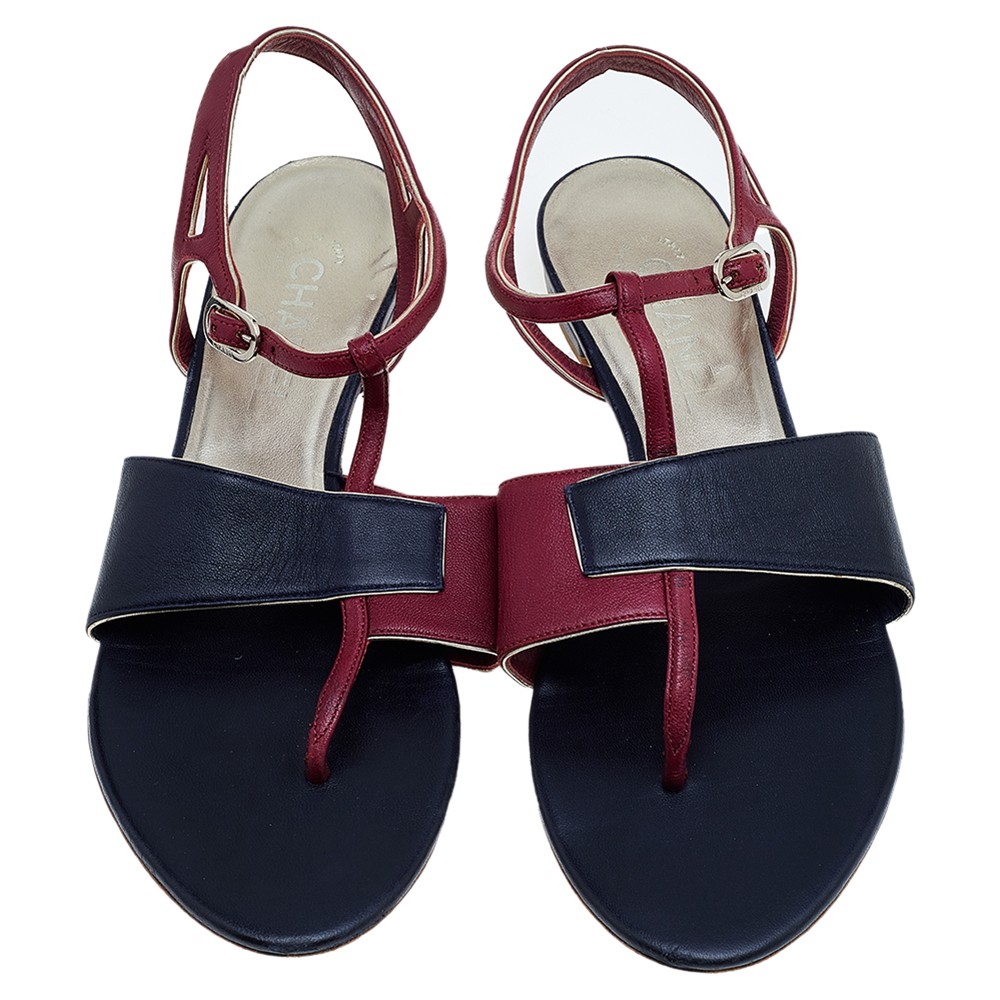 Comfort and fashion combine to bring forth these sandals from Chanel. These flat sandals are crafted from leather and come equipped with comfortable leather lined insoles and buckled ankle straps. Pair them with shirt dresses or knee length skirts for an effortless look.Certified by The Luxury Closet - This item has gone through a detailed authentication process overseen by our experts. We offer a lifetime guarantee of authenticity on all our items. Import duties, taxes and charges are not included in the item price. These charges are the buyers responsibility. Please check with your country’s customs office to determine what these additional cost will be prior to buying. Our eBay Store About Us Contact Us Add to Favorite Sellers Chanel Burgundy/Black Leather CC T-Strap Sandals Size 39.5 $469.7 Comfort and fashion combine to bring forth these sandals from Chanel. These flat sandals are crafted from leather and come equipped with comfortable leather lined insoles and buckled ankle straps. Pair them with shirt dresses or knee length skirts for an effortless look. Product Details Brand Color Burgundy Dimensions Material Leather Size 39.5 Outsole Width 9 cm Outsole Length 25 cm Heel Height Includes The Luxury Closet Packaging Certified by The Luxury Closet This item has gone through a detailed authentication process overseen by our experts. We offer a lifetime guarantee of authenticity on all our items. How We Check The in-house team of experts at The Luxury Closet is highly trained to verify the authenticity and the condition of the luxury products. They ensure that only 100% authentic items are put on sale.The evaluation process is unique with its own mix of assessment criteria and differs according to the category. Each item is evaluated based on the following combination of hallmarks, hardware, stitching, symmetry, material, craftsmanship, stamping, codes, hologram stickers, and packaging. Our authenticators also check if the items have been modified or amended (e.g., aftermarket diamonds, replaced batteries, repaired bags, etc.) International Buyers Import duties, taxes and charges are not included in the item price. These charges are the buyers responsibility. Please check with your country’s customs office to determine what these additional cost will be prior to buying.