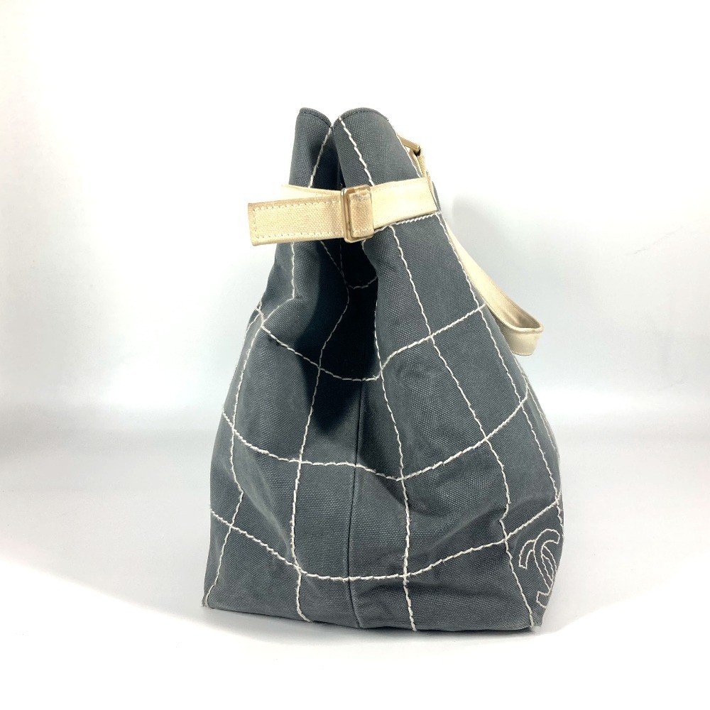 Chanel CC Coco Mark Canvas Shoulder Bag Gray/White Women's Tote 44cm Key Features - Brand: Chanel - Model: CC Coco Mark Chocolate Bar Shoulder Bag - Type: Shoulder Bag, Tote Style - Color: Gray and White - Material: Canvas - Size: W44cm x H30.5cm x D19cm (measured at the bottom) - Condition: Used, B grade - Features: Open top closure, interior open pocket x 1 - Accessories: Serial sticker included - Description: Spacious Chanel shoulder bag with ample storage. - Condition details: Exterior shows scratches, stains, wear, discoloration, shape distortion, and corner/edge tears. Interior has scratches, stains, wear, and discoloration. Specifications Brand chanel Country Japan Product Description About Item This item will be shipped from Gifu Prefecture, Japan. Payment Supports managed payments Please pay within 5 days after auction is finished. About Us We are located in Japan. It's our pleasure to make you happy by proposing our recommend item. If you have any questions or request about items; please feel free to ask us. International Buyers - Please Note: -Import duties; taxes; and charges are not included in the item price or shipping charges. These charges are the buyer's responsibility. -Please check with your country's customs office to determine what these additional costs will be prior to bidding/buying. -These charges are normally collected by the delivering freight (shipping) company or when you pick the item up - do not confuse them for additional shipping charges. -We do not mark merchandise values below value or mark items as - gifts - The US and International government regulations prohibit such behavior. Thank you for your understanding.