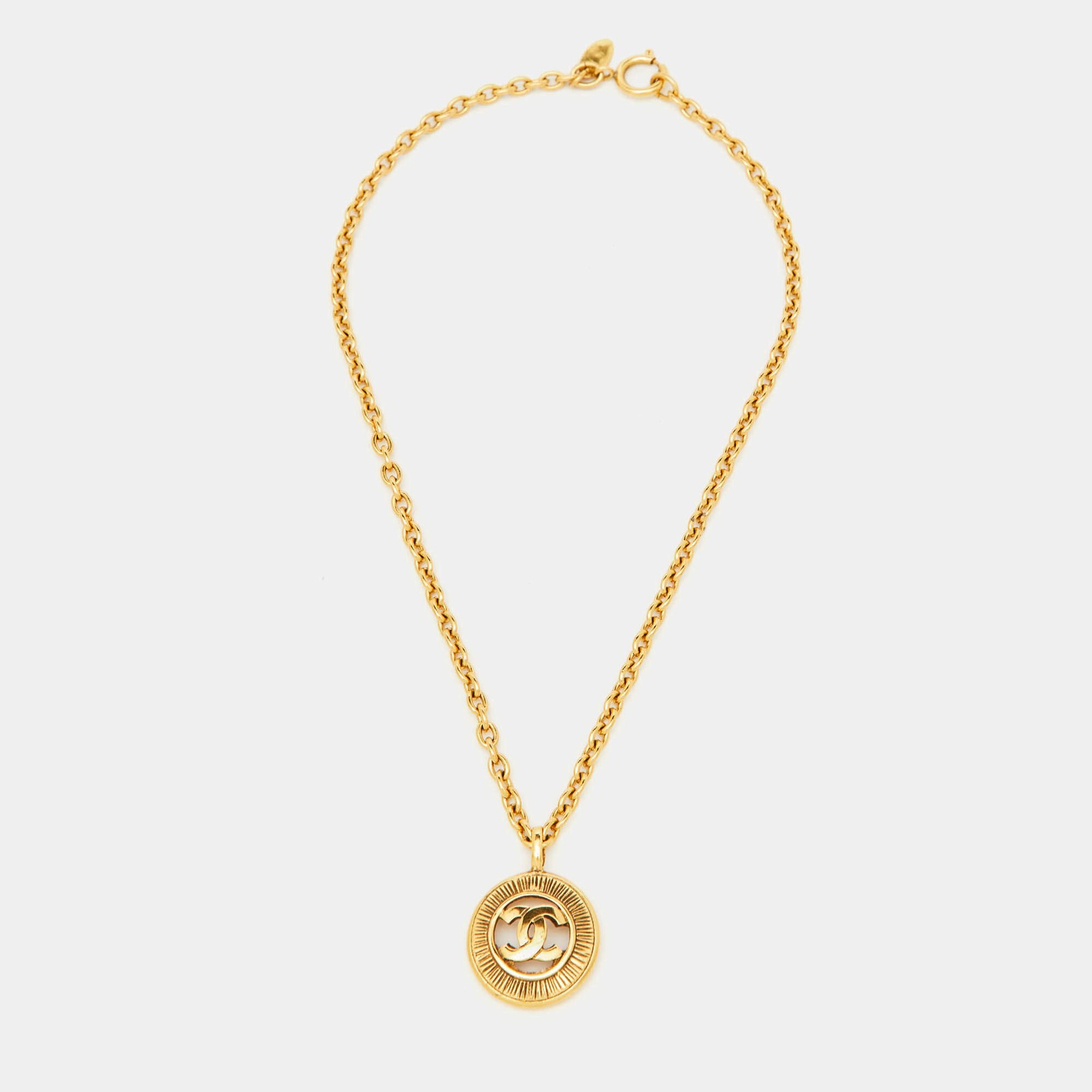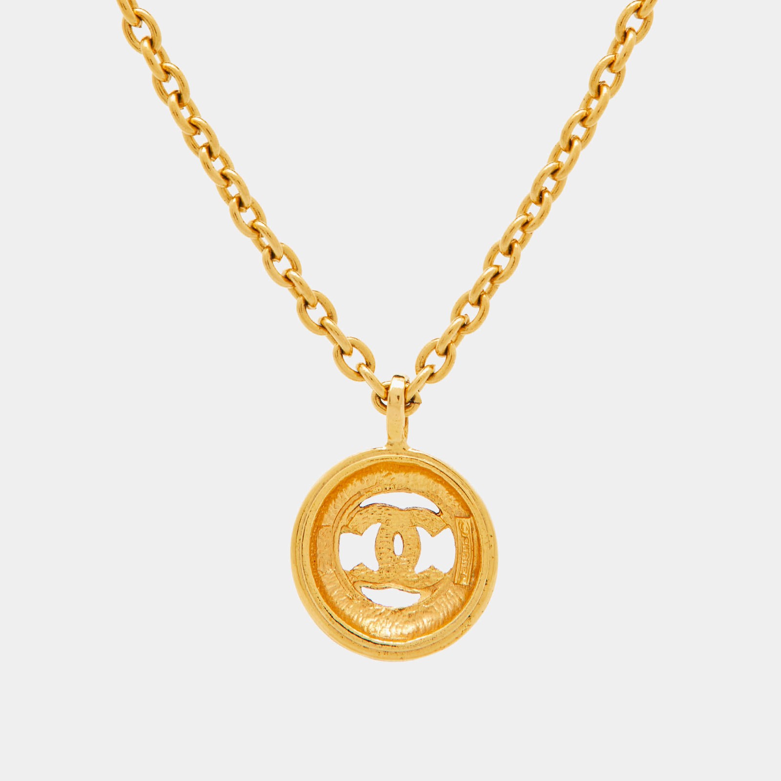 $ 121.39Chanel CC Gold Tone Round Pendant Long Necklace