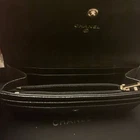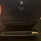 Chanel black caviar 6.25 inch fold over Wallet with black and silver logo with crystals. In good condition 9/10