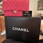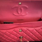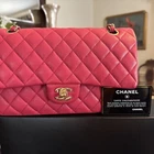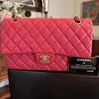 The Chanel Caviar Classic medium double flap bag is a luxurious and stylish shoulder bag designed for women. With a striking exterior color of hot pink and gold hardware, this bag exudes elegance and sophistication. Made from high-quality leather in the signature Chanel Caviar collection, this medium-sized bag is perfect for carrying everyday essentials in a chic and fashionable way. The iconic Chanel Classic Double Flap design adds a touch of timeless chic to any outfit, making it a must-have accessory for any fashion-forward woman. Prestine, plastic on hardware- bag has been carried a few times- see photo's MSR $11,300 Base length 10"Height 6"Width 2.5"Drop 9.25"Drop 17" Wear as shoulder bag, carry as handbag, or crossbody style Gold chain link matching gold plated classic CC turn lock backside pocket, smooth leather interior with pockets zipper pocket on flap see photos last Smoke free no pet home