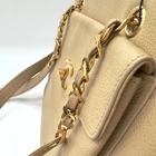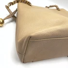 Lighting gave me false impression that this bag was a pale yellow instead of the tan one that arrived. Nevertheless, the item arrived well packaged from the authenticator and in excellent condition. I talked to the Seller who was easy to communicate with. I am keeping the bag. It will make a nice gift.