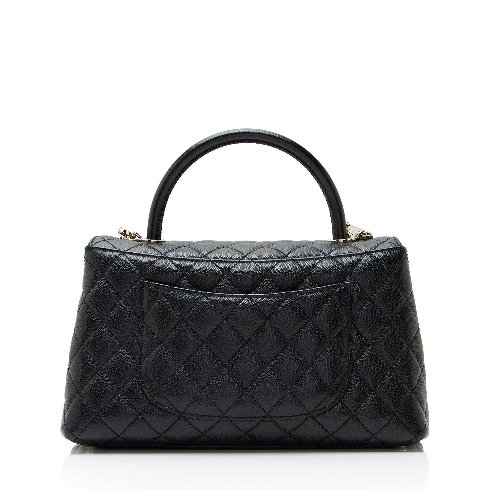 Minor scuffs to exterior bottom corners. Light surface scratches to hardware. Minor tarnishing to closure hardware. Light imprints to interior base. The interlocking CC logo is synonymous with elegance and high French style. Gabrielle "Coco" Chanel first opened a Parisian millinery shop in the early 1900s. By the 1920s she was revolutionizing the world of women's fashion. World-renowned fashion icon Karl Lagerfeld was the creative director from 1983 until his death in 2019. New Creative Director Virginie Viard, had worked alongside Karl for 32 years. The House of Chanel continues to set the standard for designer quality and desirability. ALL LOUIS 1+1 VUITTON LOUIS 1+1 VUITTON KEEPALLS LOUIS 1+1 VUITTON SPEEDYS LOUIS 1+1 VUITTON ALMAS Chanel Caviar Leather Coco Top Handle Small Flap Bag Chanel Chanel Caviar Leather Coco Top Handle Small Flap Bag Product Details The interlocking CC logo is synonymous with elegance and high French style. Gabrielle "Coco" Chanel first opened a Parisian millinery shop in the early 1900s. By the 1920s she was revolutionizing the world of women's fashion. World-renowned fashion icon Karl Lagerfeld was the creative director from 1983 until his death in 2019. New Creative Director Virginie Viard, had worked alongside Karl for 32 years. The House of Chanel continues to set the standard for designer quality and desirability. All photos are of actual item being sold. This Chanel® item is guaranteed to be authentic. Chanel is a registered trademark of Chanel. LuxeDH is not affiliated with or represents Chanel in any way or form.