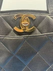 CHANEL handbag. Approximate dimensions: Height: 9.06 inches, Width: 11.02 inches, Depth: 3.15 inches. Material: Leather. Color: Black. Shape: Handbag. Closure: Zipper. Please understand that there may be oversights due to amateur inspection. Please understand that this is a used item. I promise fast shipping via FedEx or DHL as soon as possible! Import duties, taxes and charges are not included in the item price or shipping charges. These charges are the buyer’s responsibility. These charges are normally collected by the delivering freight (shipping) company or when you pick the item up - do not confuse them for additional shipping charges.