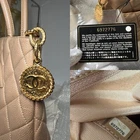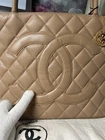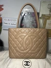 This is an authentic vintage Chanel Caviar Leather Medallion Tote in dark beige color. Experience the timeless style of Chanel with this classic tote bag! The gold hardware and iconic CHANEL medallion add a touch of luxury and sophistication to this beautiful bag. Whether you're running errands or heading to a special event, this CHANEL tote bag is sure to turn heads and make a statement. Featuring CC Logo at the front. It has 1 interior slip pocket, 1 interior zippered pocket, 1 exterior slip back pocket Size (in): 11.75" x 10" x 6" Shoulder strap Drop: 6.25” Hologram intact, comes with authenticity card, and CC dust bag This is in great pre-owned condition with Minor signs of wear present. Clean, no smell, there’s a small dot in front of the bag but Not noticeable (see finger pointing). Please refer to all photos and feel free to ask questions before purchasing. This is cross-posted.
