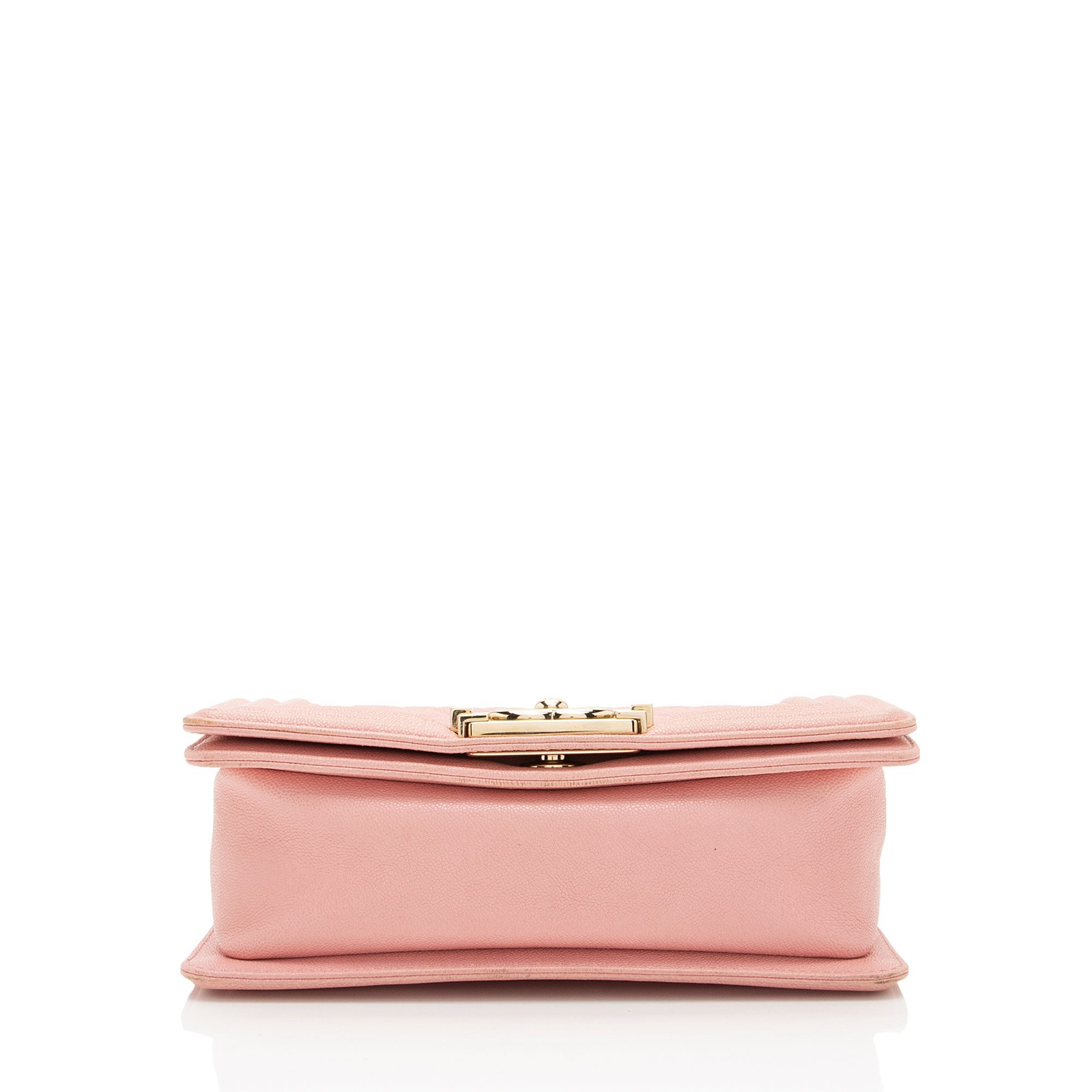 Light darkening and marks throughout exterior and shoulder strap leather. Darkening to exterior bottom corners. Light surface scratches to hardware. Light ink marks and wear throughout interior. The interlocking CC logo is synonymous with elegance and high French style. Gabrielle "Coco" Chanel first opened a Parisian millinery shop in the early 1900s. By the 1920s she was revolutionizing the world of women's fashion. World-renowned fashion icon Karl Lagerfeld was the creative director from 1983 until his death in 2019. New Creative Director Virginie Viard, had worked alongside Karl for 32 years. The House of Chanel continues to set the standard for designer quality and desirability. ALL LOUIS 1+1 VUITTON LOUIS 1+1 VUITTON KEEPALLS LOUIS 1+1 VUITTON SPEEDYS LOUIS 1+1 VUITTON ALMAS Chanel Caviar Leather Small Boy Bag Chanel Chanel Caviar Leather Small Boy Bag Product Details The interlocking CC logo is synonymous with elegance and high French style. Gabrielle "Coco" Chanel first opened a Parisian millinery shop in the early 1900s. By the 1920s she was revolutionizing the world of women's fashion. World-renowned fashion icon Karl Lagerfeld was the creative director from 1983 until his death in 2019. New Creative Director Virginie Viard, had worked alongside Karl for 32 years. The House of Chanel continues to set the standard for designer quality and desirability. All photos are of actual item being sold. This Chanel® item is guaranteed to be authentic. Chanel is a registered trademark of Chanel. LuxeDH is not affiliated with or represents Chanel in any way or form.