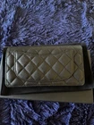 beautiful bi fold chanel wallet in black caviar leather , this wallet was used only once for a short time and is in excellent condition , comes with box, dustbag , ribbon and card , discontinued style , a timeless and classic piece to own