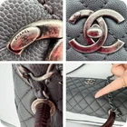 100% guarantee authentic. Half retail price. Chanel coco handle caviar with lizard skin handle Size medium Chanel Top Handle Bag By Virginie Viard Black Interlocking CC Logo, Quilted Pattern & Chain-Link Accent Ages silver tone Hardware Lizard Trim/handle burgundy/wine color Chain-Link Shoulder Straps Chain-Link Accents & Single Exterior Pocket Leather Lining Turn-Lock Closure at Front Protective Feet at Base SIZE AND FIT 12"W x 9"H x 5"D 3.5" handle drop 20.5" strap drop Condition: this is in ore-owned in very good condition. shape is supple not slouchy, no stain rip or scratches. All corner are hardly notice sign of use. The flap crease/bend at the edge is there and visible. Handle has no scratches and I side has usual use no stain or rip. See photos. I devalue my bag to lower your expectation as this isn’t brand new. However it is in very good condition shape. Bag is conditioned regularly to keep it nice and supple. Includes Dust Bag, authenticity card and entrupy certificate. Although eBay will authenticate before shipping it out to you I’m a USA seller so there is no tariff!!! Free 2-day fed ex shipping with buy it now to 48 cont states. Ship with insurance I sell a lot of my designer hand bags and things. Be sure to check all out!!!