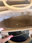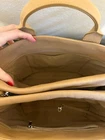 Authentic CHANEL Caviar Quilted Urban Companion Top Handle Shopping Tote in Beige. The tote is diamond quilted caviar leather in light beige. The shoulder bag features polished silver chain link leather threaded shoulder straps with leather shoulder pads, leather top strap handles with a polished silver CC charm. The top is open to a matching beige fabric interior with zipper and patch pockets.