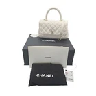 Chanel Caviar Quilted Coco Handle Flap Bag Mini Chanel Caviar Quilted Coco Handle Flap Bag Mini This Chanel Caviar Quilted Coco Handle Flap Bag is crafted of diamond-quilted caviar leather in white. It features a white leather top handle, a rear patch pocket, a leather threaded ruthenium-tone chain-link shoulder strap with a leather shoulder pad, and a ruthenium CC turn-lock closure. This opens to a partitioned beige leather interior with zipper and patch pockets. Designer: Chanel Material: Caviar leather Origin: Italy Date/Authenticity Code: UL****AK / Microchip Place of Origin: Italy Measurements: 9.5"W x 6.25"H x 2.75"D Handle Drop: 3.5” Strap Drop: 17.5” Pockets: One slip and one zip interior; One exterior patch Interior Lining: Leather Closure: CC turn-lock Hardware: Ruthenium-tone metal Includes: Chanel Box, Dust bag, Care booklet, Entrupy Certificate Overall Condition: Good Pre-Loved Condition; Moderate discoloration throughout, corner and edge wear, loss of finish to hardware. (see photos for details). We accept payment by any of the following methods: PayPal Please pay as soon as possible upon our acceptance of your offer, as that will allow us to post your item to you sooner! Payment All packages are shipped out daily M-F. Most are dispatched within 1-2 business days of payment. Shipping methods are determined by weight, size, cost, and location. Most packages will be delivered within 2-6 business days. Most items are shipped with signature required. Please contact us if you have questions. Shipping We offer 30-day hassle free returns. We strive to describe and photograph all of our items accurately. We want you to be happy with your purchase, but in the event that we made a mistake please contact us if you have any concerns. Buyer pays return shipping fees. There will be a 10% restocking fee on returns not due to our error. Returns The Relux has over 30 years of knowledge and expertise in Jewelry/Antiques/Fashion and luxury goods. We offer beautiful name brand crystal, turquoise jewelry, watches, handbags, sculptures, and paintings. Please view all of our listings to see what is new this week. About Us Affordable Pricing Guaranteed Authentic Fast Shipping Chanel Caviar Quilted Coco Handle Flap Bag Mini This Chanel Caviar Quilted Coco Handle Flap Bag is crafted of diamond-quilted caviar leather in white. It features a white leather top handle, a rear patch pocket, a leather threaded ruthenium-tone chain-link shoulder strap with a leather shoulder pad, and a ruthenium CC turn-lock closure. This opens to a partitioned beige leather interior with zipper and patch pockets. Designer: Chanel Material: Caviar leather Origin: Italy Date/Authenticity Code: UL****AK / Microchip Place of Origin: Italy Measurements: 9.5"W x 6.25"H x 2.75"D Handle Drop: 3.5” Strap Drop: 17.5” Pockets: One slip and one zip interior; One exterior patch Interior Lining: Leather Closure: CC turn-lock Hardware: Ruthenium-tone metal Includes: Chanel Box, Dust bag, Care booklet, Entrupy Certificate Overall Condition: Good Pre-Loved Condition; Moderate discoloration throughout, corner and edge wear, loss of finish to hardware. (see photos for details). Chanel Caviar Quilted Coco Handle Flap Bag Mini Chanel Caviar Quilted Coco Handle Flap Bag Mini This Chanel Caviar Quilted Coco Handle Flap Bag is crafted of diamond-quilted caviar leather in white. It features a white leather top handle, a rear patch pocket, a leather threaded ruthenium-tone chain-link shoulder strap with a leather shoulder pad, and a ruthenium CC turn-lock closure. This opens to a partitioned beige leather interior with zipper and patch pockets. Designer: Chanel Material: Caviar leather Origin: Italy Date/Authenticity Code: UL****AK / Microchip Place of Origin: Italy Measurements: 9.5"W x 6.25"H x 2.75"D Handle Drop: 3.5” Strap Drop: 17.5” Pockets: One slip and one zip interior; One exterior patch Interior Lining: Leather Closure: CC turn-lock Hardware: Ruthenium-tone metal Includes: Chanel Box, Dust bag, Care booklet, Entrupy Certificate Overall Condition: Good Pre-Loved Condition; Moderate discoloration throughout, corner and edge wear, loss of finish to hardware. (see photos for details). All packages are shipped out daily M-F. Most are dispatched within 1-2 business days of payment. Shipping methods are determined by weight, size, cost, and location. Most packages will be delivered within 2-6 business days. Most items are shipped with signature required. Please contact us if you have questions. Payment We accept payment by any of the following methods: PayPal Please pay as soon as possible upon our acceptance of your offer, as that will allow us to post your item to you sooner! Shipping The Relux has over 30 years of knowledge and expertise in Jewelry/Antiques/Fashion and luxury goods. We offer beautiful name brand crystal, turquoise jewelry, watches, handbags, sculptures, and paintings. Please view all of our listings to see what is new this week. Returns We offer 30-day hassle free returns. We strive to describe and photograph all of our items accurately. We want you to be happy with your purchase, but in the event that we made a mistake please contact us if you have any concerns. Buyer pays return shipping fees. There will be a 10% restocking fee on returns not due to our error. About Us Guaranteed Authentic Affordable Pricing Fast Shipping Chanel Caviar Quilted Coco Handle Flap Bag Mini This Chanel Caviar Quilted Coco Handle Flap Bag is crafted of diamond-quilted caviar leather in white. It features a white leather top handle, a rear patch pocket, a leather threaded ruthenium-tone chain-link shoulder strap with a leather shoulder pad, and a ruthenium CC turn-lock closure. This opens to a partitioned beige leather interior with zipper and patch pockets. Designer: Chanel Material: Caviar leather Origin: Italy Date/Authenticity Code: UL****AK / Microchip Place of Origin: Italy Measurements: 9.5"W x 6.25"H x 2.75"D Handle Drop: 3.5