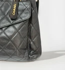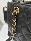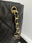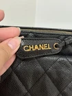 Details: • Brand: Chanel • Material: Black caviar leather • Hardware: Gold-tone (24k plated) • Chain: Leather-woven gold-tone chain shoulder straps • Closure: Front flap with classic CC turn-lock • Interior: Three spacious compartments, one in the middle with zipper. Condition: • Good vintage condition with natural creasing on the front leather • Minor wear consistent with age and hairline scratches • Missing one “C” on the zipper pull (does not affect function) • Clean interior and intact structure This is a stunning and rare vintage Chanel that still has plenty of life and style to offer! Includes certificate of authenticity from Entrupy!