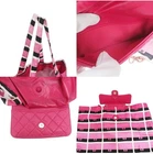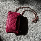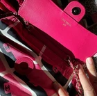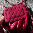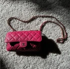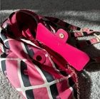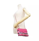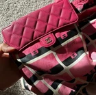 Length: 13.75 in Height: 16.00 in Drop: 2.00 in Drop: 10.25 in Description This is an authentic CHANEL Caviar Fabric Quilted Foldable Tote With Chain in Pink and Multicolor. This edgy style bag is crafted of luxurious calfskin leather in signature diamond shaped quilting. The bag features fabric top handles, a leather threaded gold chain shoulder strap and gold hardware. The bag also features a foldable multicolor tote. Come with dustbag and authentication certificate. Limited edition.