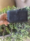Authentic Chanel caviar wallet in pretty nice condition. There’s a tear in the inside lining, but can easily be fixed by a cobbler. It doesn’t affect the use of the wallet it’s in the billfold area. Gold brass hardware. Very strong caviar leather clean.