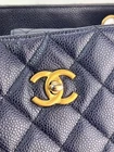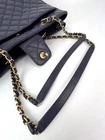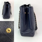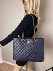Pre-Owned 100% Authentic Chanel Caviar Quilted Large Classic Shopping Blue Leather Tote RATING: B...Very Good, well maintained, shows minor signs of wear MATERIAL: caviar leather HANDLE: double leather woven in chain DROP: 10.5'' COLOR: dark blue, navy CLOSURE: toggle EXTERIOR: sides has a little bend near bottom ODOR: no HARDWARE: antique golden, little faint wear on hardware INTERIOR: blue nylon, clean DATE CODE: 21953297 MEASUREMENTS: H 11'' x L 14'' x W 4'' Please see all pictures to determine final condition, pictures are of actual item ! SHIPPING: will ship same day or next day SKU C410 0824
