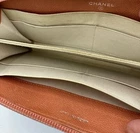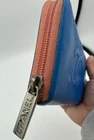 Amazingly Rare Chanel Caviar Wallet with super fun colors of electric blue and coral zipper - you will not find this anywhere else. comes with box and entropy authenticity.condition: good - zipper works great, hologram still in place, just has some minor dirt on the beige inside. otherwise super clean.