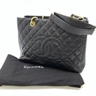 Chanel Caviar Skin Chain Tote Bag Black Coco Shoulder Bag 42357