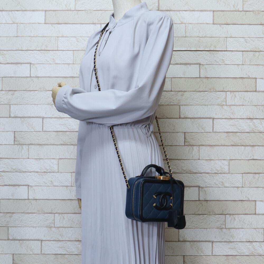 Attention All of our items are sent from Japan. Customer duties, VAT, sales taxes, and charges are not included in the item price. Customer duties or VAT are collected by the shipping company before you pick up the parcel. Shipping company will contact you for customer duties or VAT payment. Please noted that we do not decline the values or mark items as gifts. US and International government regulations prohibit such behavior. ※ Please noted that the watch with exotic leather strap is not allowed to import/export to oversea without "CITES" certificate. If the watch included exotic leather strap, the strap will be removed before ship out. (Buckles and strap pins will be included with the item.) ※ AUTHENTIC CHANEL Shoulder Bag Cross Body Caviar skin CC filigree Small Chain Vanity used Description Store Item No. BRB10010000014040 Brand CHANEL Country of Manufacture Italy Serial 28584108 Size(CM) W15.5cm x H12cm x D7cm Handle:9cm Shoulder:130cm Size(Inch) W6.1 x H4.7 x D2.8inch Handle:3.5inch Shoulder:51.2inch Color Navy / black Weight 470g Style Shoulder Bag come with Guarantee card 、key 、Padlock (Cadena / Padlock) 、Clochette Spec [Inside]Open pocket x 1 There is slightly color difference between the real object and the photos. It is a one point limited item, it is a first-come-first-served basis. This Item might have other tiny scratches as it is displayed. Condition Rank Total Rank: A (good condition. Scratch and dirt are in good condition) Inside Corners Rubbed Condition rank N New Brand new with tags. S New / Unused New item, but may have insignificant scratches or slight discoloration due to storage or display. A Excellent Used item, may have insignificant scratches and signs of usage. B Good Used item, has some scratches, stains and obvious signs of usage. C Usable Item has scratches, discoloration and other heavy signs of usage. Shipping FREE delivery! We accept returns for 30 days after you received the item. *Details of the refund & return please refer to the "shipping and payments". Please check carefully before purchase. Delivery day is - 3 to 10 days. We will provide tracking number after the parcel shipped out. Authenticity All the photo are actual photos that taken by our staff!! Our company has engaged second-hand goods business for over 30 years, we have over 90 retail shops in Japan and 6 shops in Hong Kong. We are the member of The Association Against Counterfeit Product Distribution (AACD), which preventing the distribution of counterfeit and fraudulent products, or otherwise eliminating such products, from the market. We guarantee the authenticity of our items. CONTACTS Please contact us by eBay message. If have any question or not satisfied with your purchase, please feel free to contact us.