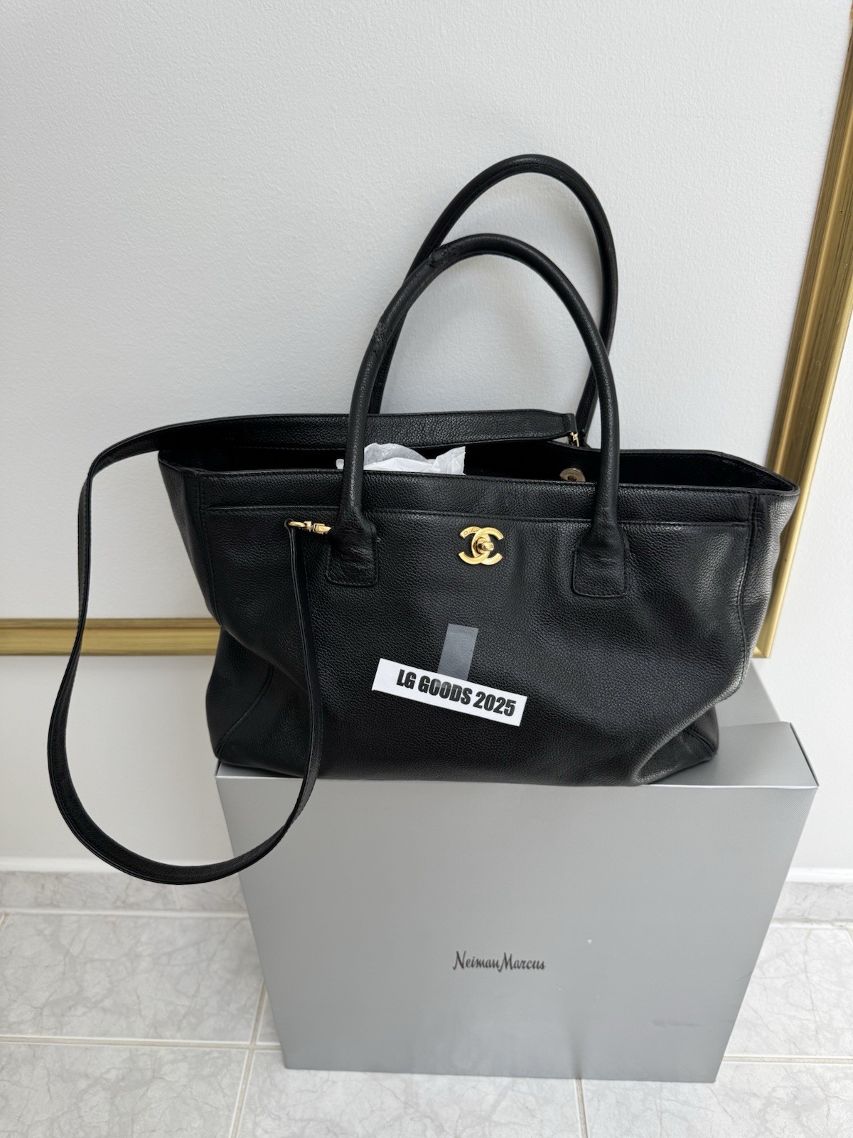 Classic Chanel bag in caviar leather with small bite marks from little puppy on handles. You can wrap a silk scarf around it or have it repaired. We can deduct the price of repair from the purchase price, let us know. Original box and dust bag Please let us know if you have any questions, we respond immediately :) Thank you.