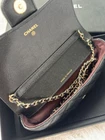The Chanel Classic Sunglasses Bag with Chain in Quilted Caviar is a mini crossbody bag made of leather with a black quilted finish. It features a gold hardware color, black leather handle/strap, and a lambskin lining. This stylish bag from the Chanel Caviar product line is designed for women and complements any outfit with its classy and chic design. Perfect for carrying your essentials while adding a touch of luxury to your look.