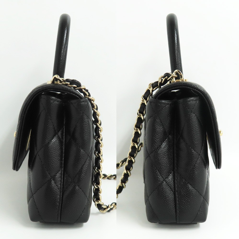 CHANEL Coco Handle Flap Matelasse Shoulder Handbag A92990 leather Black Used GHW